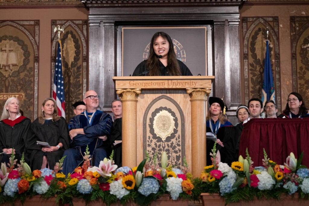 Georgetown University College of Arts & Sciences celebrated the achievements of exceptional undergraduate students in the Class of 2025 at the 106th annual Tropaia Exercises in Gaston Hall.